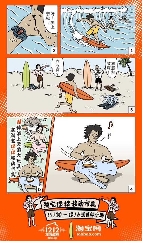 这组有点神转折意味的动态漫画,目的是推广淘宝的移动市集,但呈现的方式却是一些只有在二次元漫画里才有可能出现的蠢萌场景。